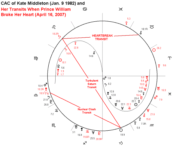 For this reason, the principles of Magi Astrology would predict that when Kate Middleton had her heart broken by Prince William, she was having a Heartbreak Transit. And that is exactly what happened.